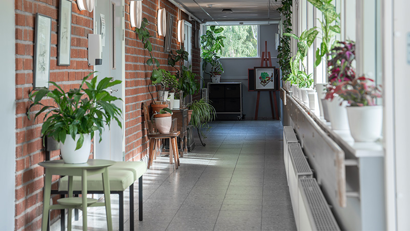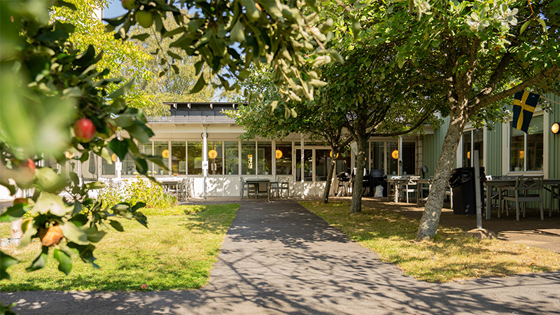 Vår innerträdgård är Hagagårdens hjärta och en oas där vi samlas när vädret tillåter. Omgivningen är naturnära och det är lätt att ta sig ut på promenader.