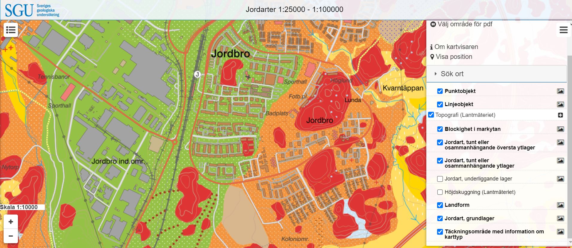 Sveriges Geologiska Undersöknings jordartskarta visar på detaljnivå vad marken består av. (Klicka i kartan, få upp en lista, klicka på +.) Ni kommer säkert att göra många istidsupptäckter i er närmiljö. Sveriges Geologiska Undersöknings karta över isräfflor, visar hur isen har rört sig över Haninge.